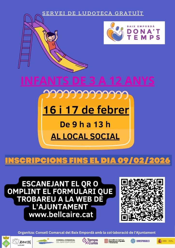 Agenda Servei de ludoteca 16 i 17 de febrer de 2026 | Local Social INSCRIPCIONS AQUÍ < Entrada Anterior
