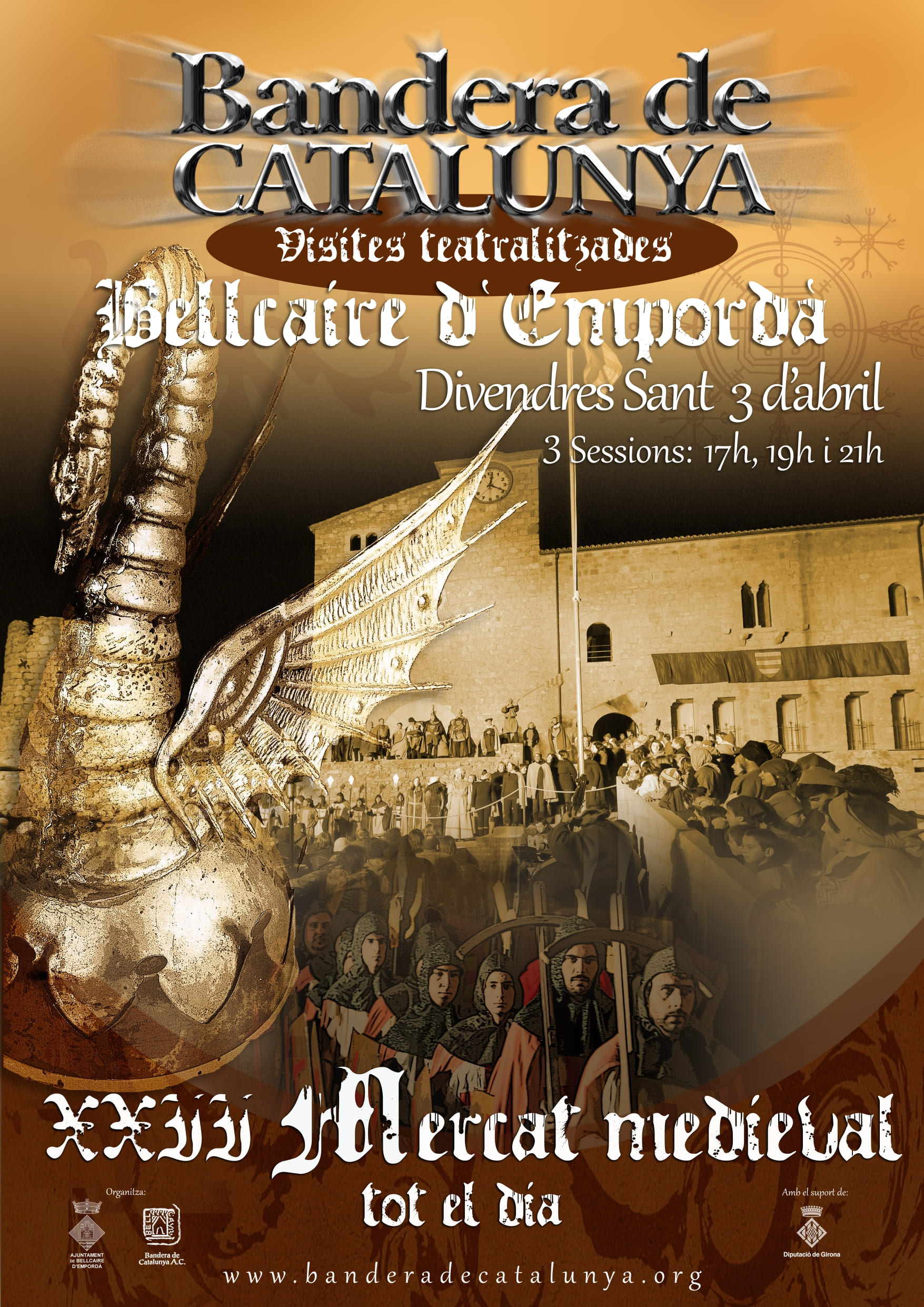 BANDERA DE CATALUNYA Tornen les visites teatralitzades i la XXII edició del Mercat Medieval a Bellcaire d’Empordà! 📅 3 d’abril Programa informatiu 🎟 Enllaç a la Venda d’entrades ℹ Més informació a banderadecatalunya.org