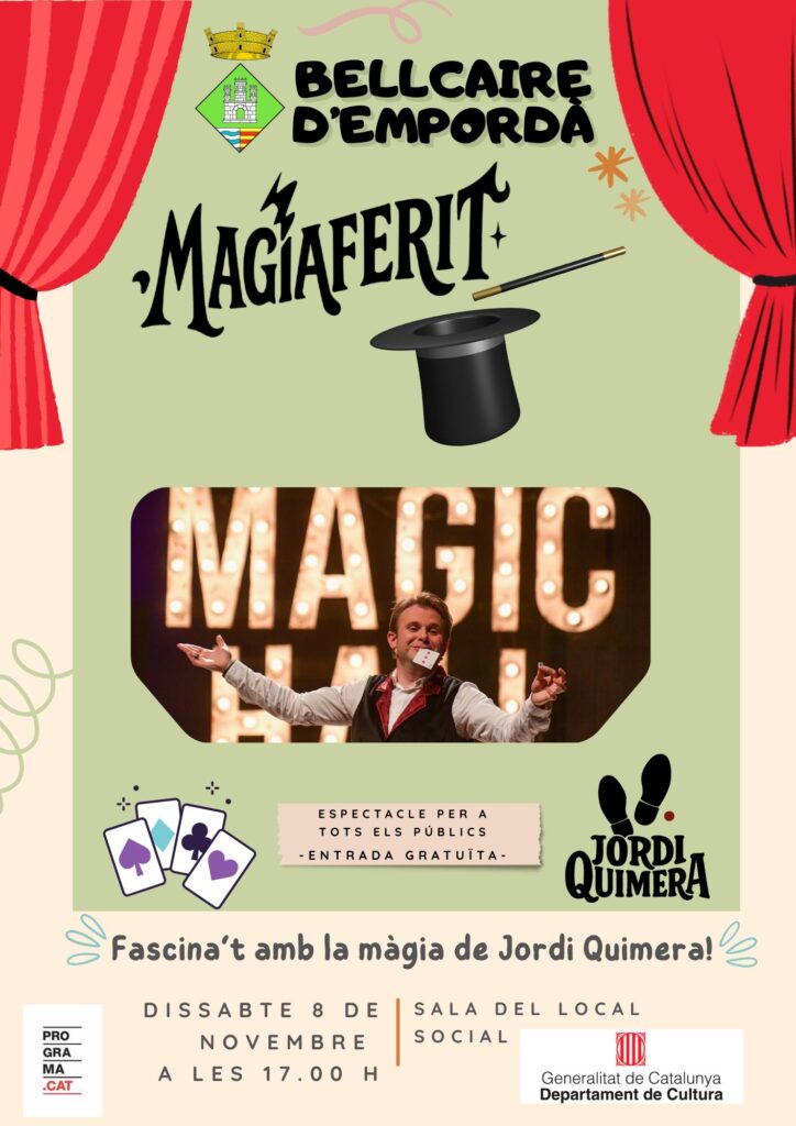 Agenda Espectacle de màgia “Magiaferit” de Jordi Quimera 8 de novembre de 2025 | Local Social < Entrada AnteriorEntrada Posterior >