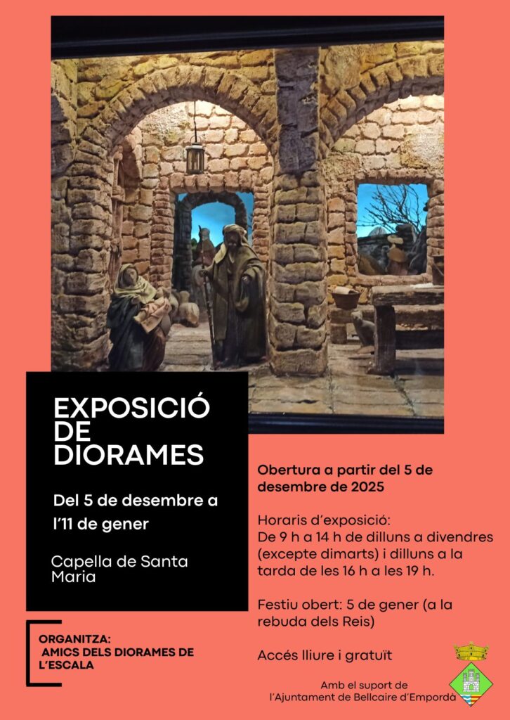 Agenda Exposició de DIORAMES DEL PESSEBRE Del 5 de desembre de 2025 a l'11 de gener de 2026 | Capella de Santa Maria < Entrada Anterior