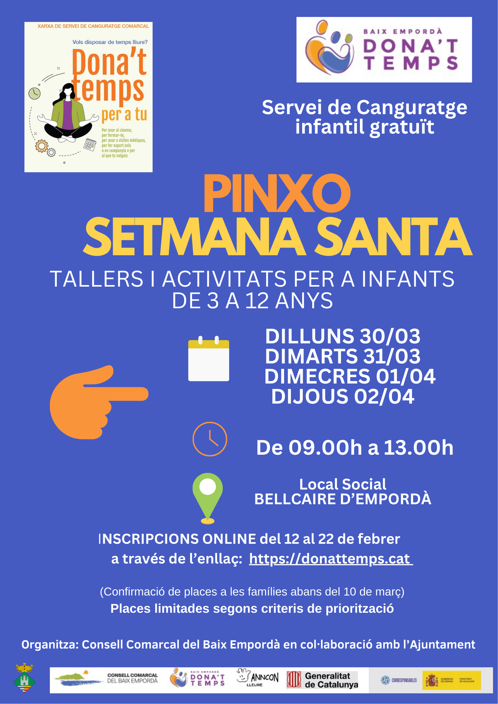 Agenda PINXO SETMANA SANTA – DONA’T TEMPS 30 i 31 de març, 1 i 2 d'abril | Local Social, de 9 h a 13 h < Entrada Anterior